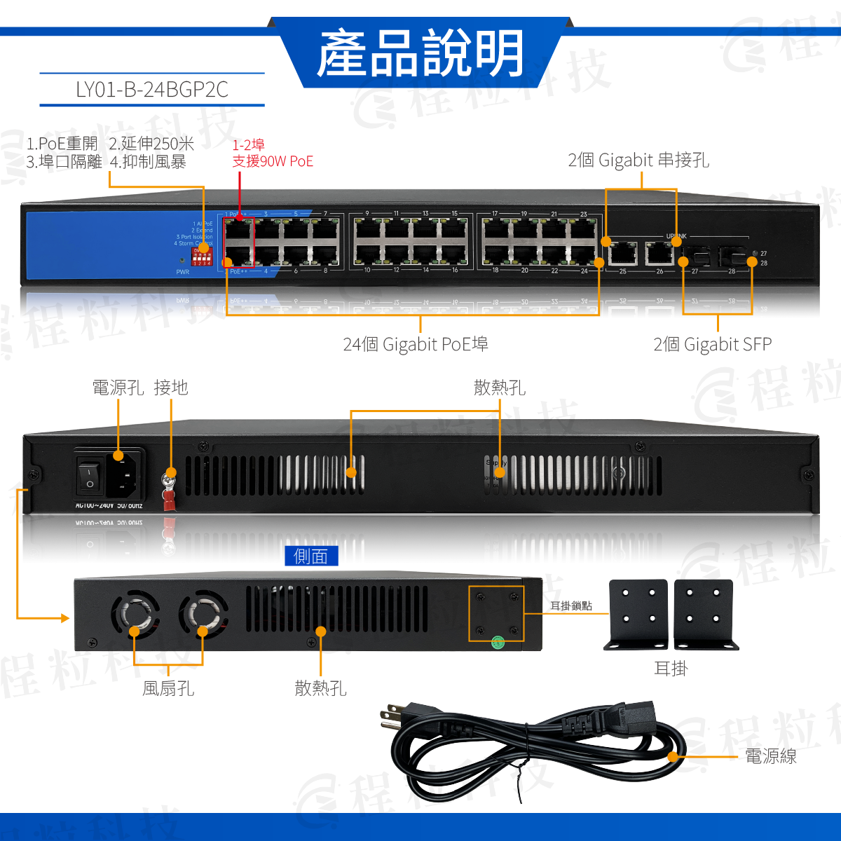 26埠Giga RJ45+2埠Giga SFP PoE交換機