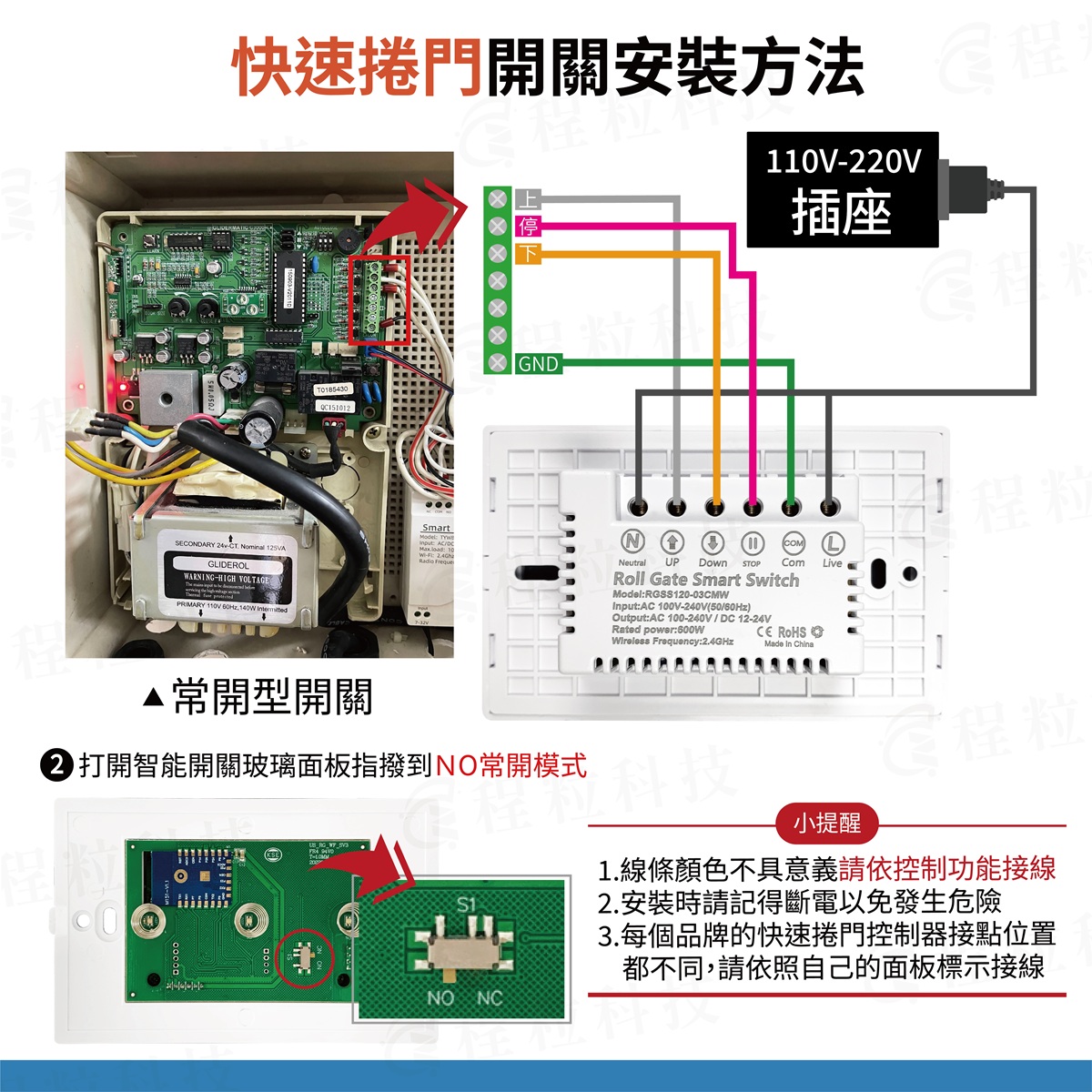 1.打開快速捲門主機外殼,找到控制端子處(會有上/停/下/GND等字樣,廠牌不一樣會有差異,建議可以拍照先私訊小編)