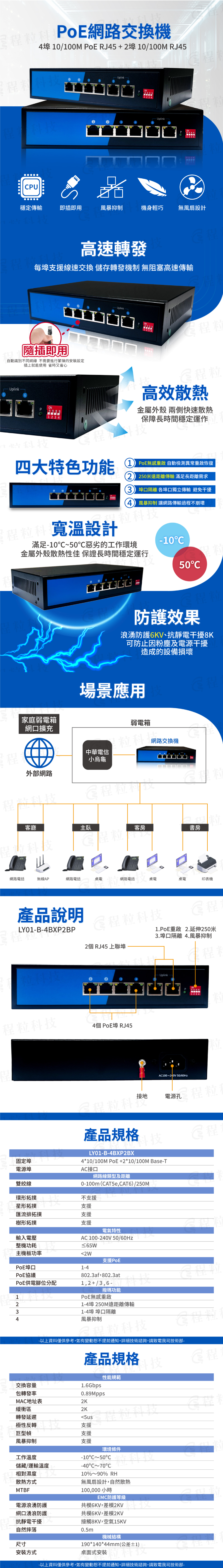 4埠100Mbps PoE+2埠 100Mbps RJ45 網路交換機